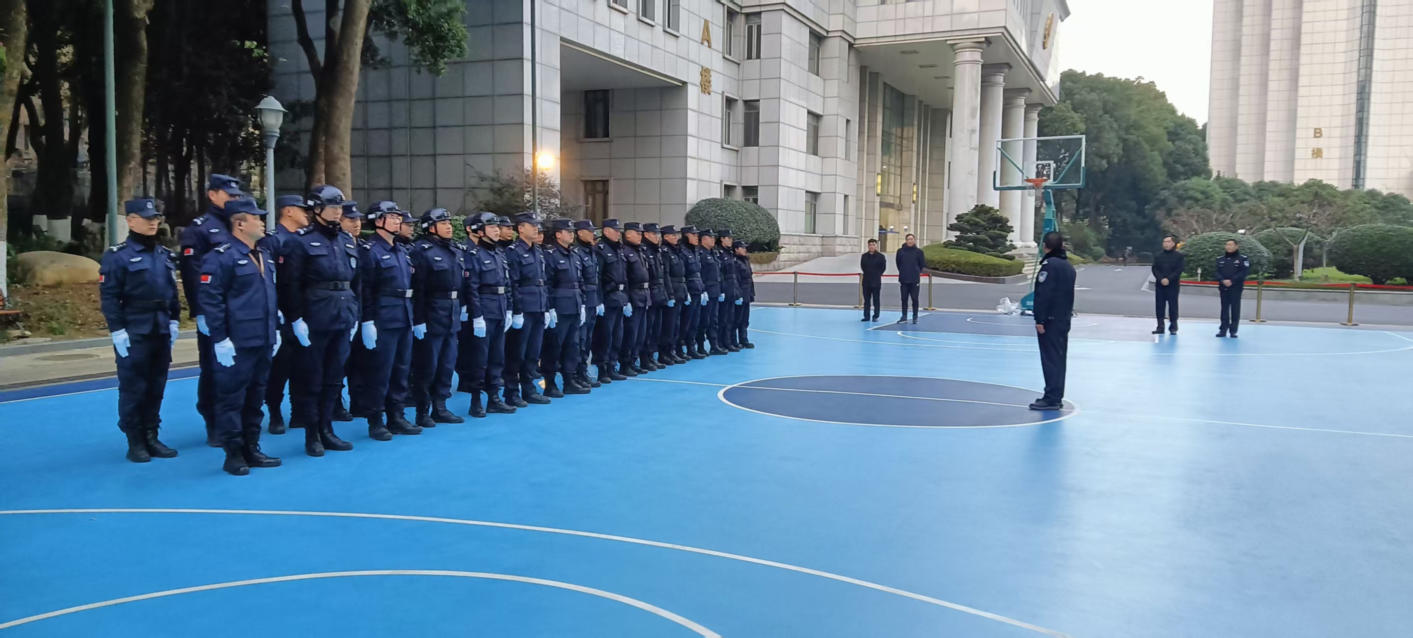 為實(shí)現(xiàn)“無(wú)感交接、平穩(wěn)過渡”,鼓樓分公司前期組建專項(xiàng)調(diào)研團(tuán)隊(duì),精準(zhǔn)對(duì)接崗位職責(zé)、工作流程與周邊環(huán)境;同步升級(jí)安保裝備,隊(duì)員身著嶄新的冬執(zhí)勤服、佩戴白手套,35臺(tái)高性能對(duì)講機(jī)保障溝通“秒達(dá)”,門崗配備防暴裝備、標(biāo)準(zhǔn)跨立執(zhí)勤,成為省廳大院規(guī)范專業(yè)的“安全風(fēng)景線”。