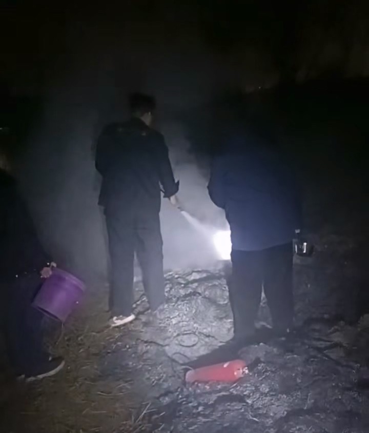 馬昌樂立即上報情況,分隊長高春勇迅速帶領(lǐng)隊員蔣俊子、吳守龍、孫雙其、高永軍、代航龍、周鎖寶、李超攜帶應(yīng)急器材趕往現(xiàn)場。面對可能蔓延的火勢和隨風(fēng)飄散的火星,隊員們沉著應(yīng)對,運用日常消防訓(xùn)練技能,僅用十余分鐘便將明火撲滅,有效防止了火勢擴大和再次起火的風(fēng)險。